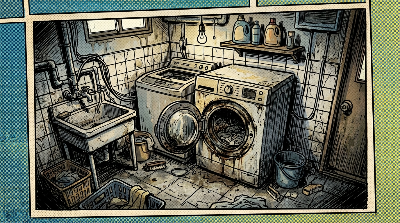 - 세탁기 문을 열면 고무·기름 냄새가 섞인 텁텁함이 올라온다.